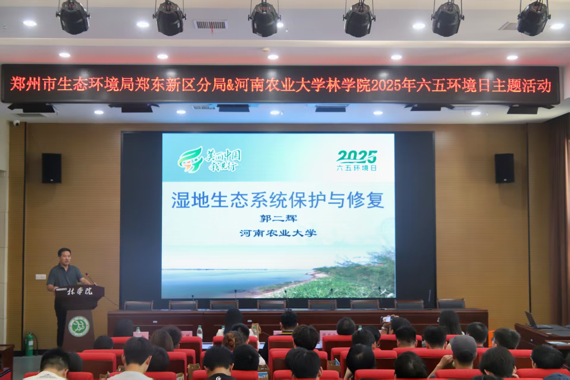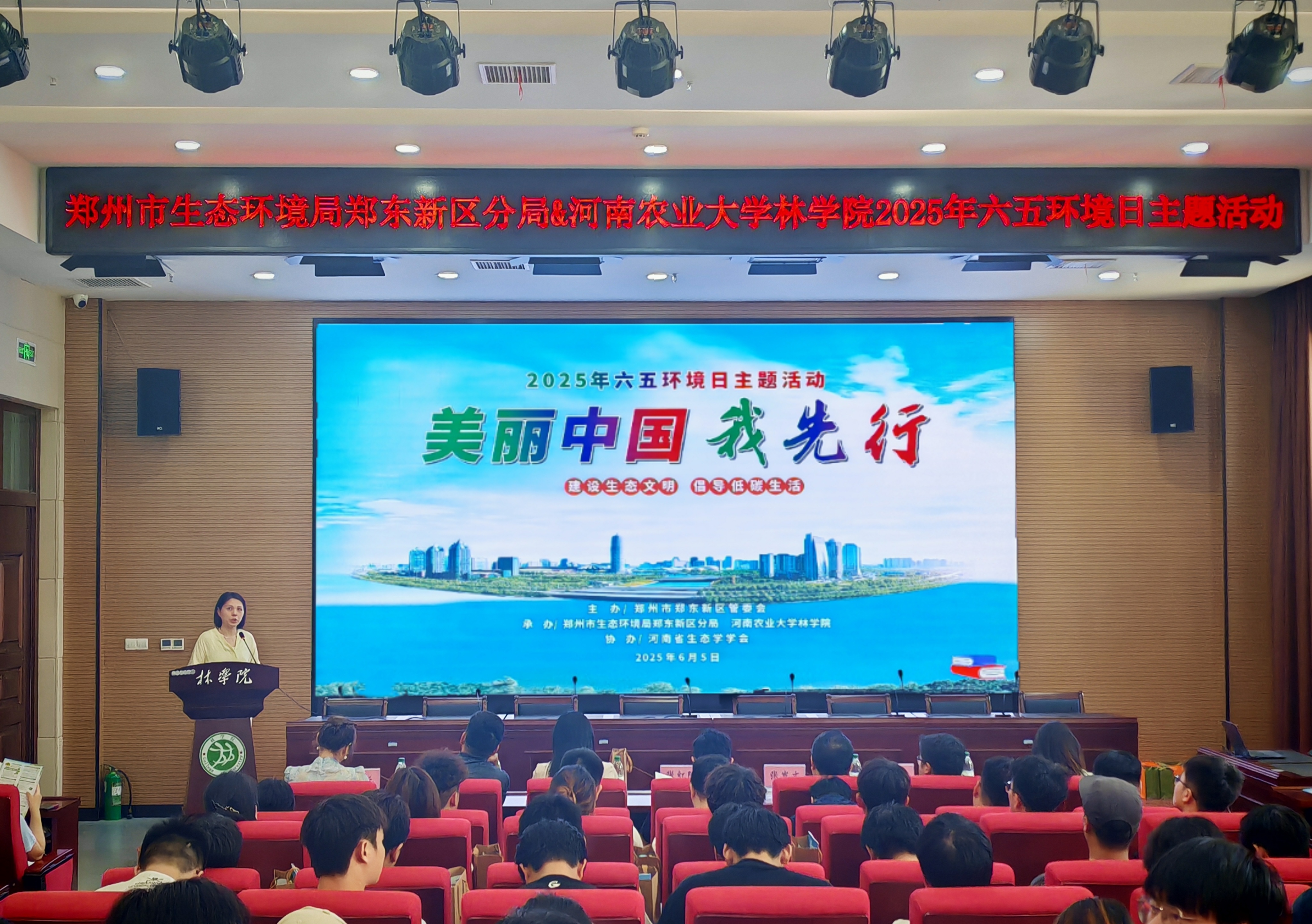 本网讯(通讯员 马蒙恩)6月5日,由郑州市东区管委会主办,爆料网 与郑州市生态环境局郑东新区分局承办的“美丽中国我先行”——2025年六五环境日主题活动在龙子湖校区力行楼举行。郑州市生态环境局郑东新区分局局长张红阳、爆料网 党委书记化青报、院党委副书记王娟及学院师生代表参加本次活动。