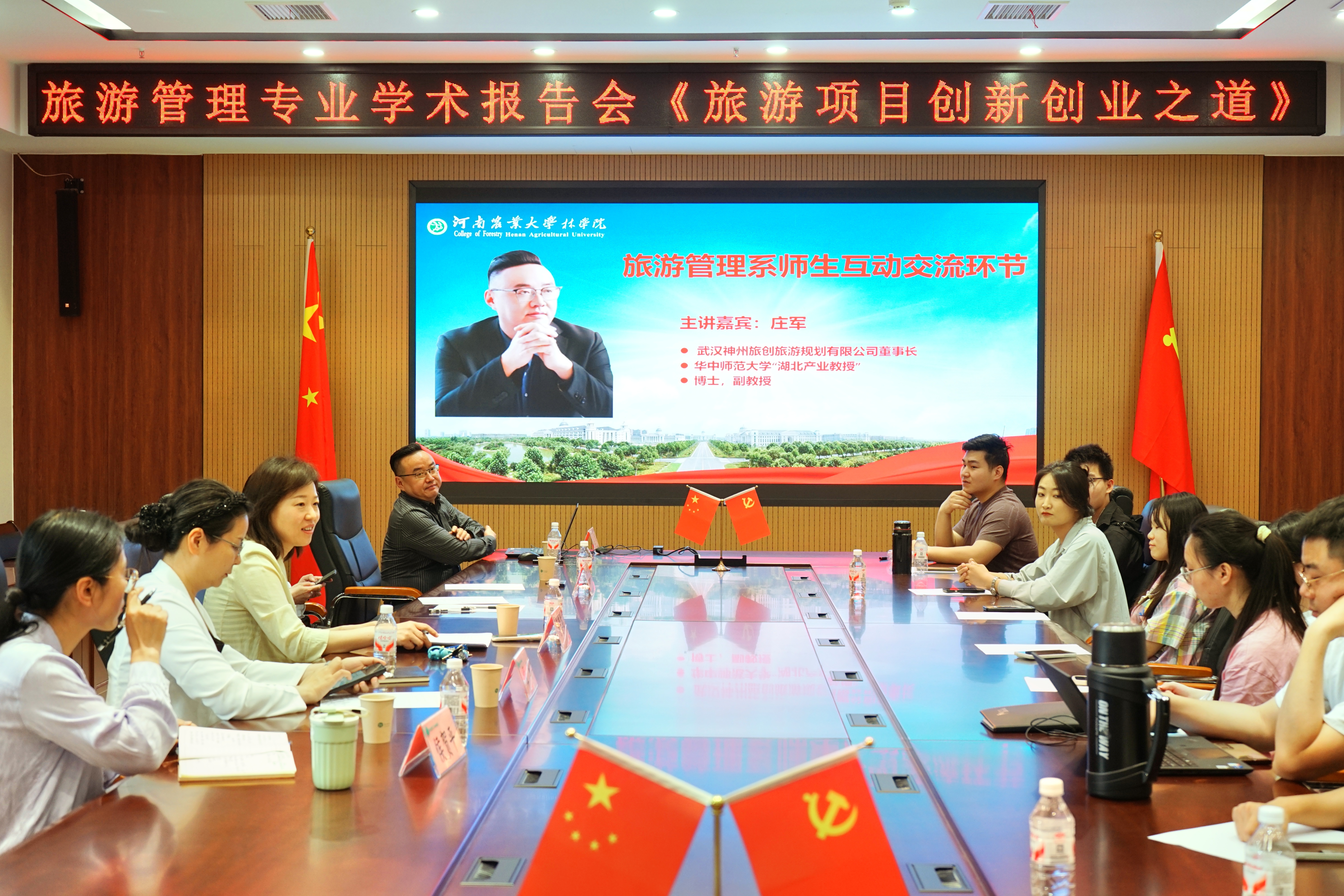 在师生交流互动环节,同学们踊跃提问,现场气氛热烈。庄军就文旅领域的创新创业模式、项目落地实践以及行业发展趋势等问题,与在场师生展开了深入交流与探讨,极大地激发了大家对文旅创新创业的浓厚兴趣与积极思考,营造了良好的学术研讨氛围。