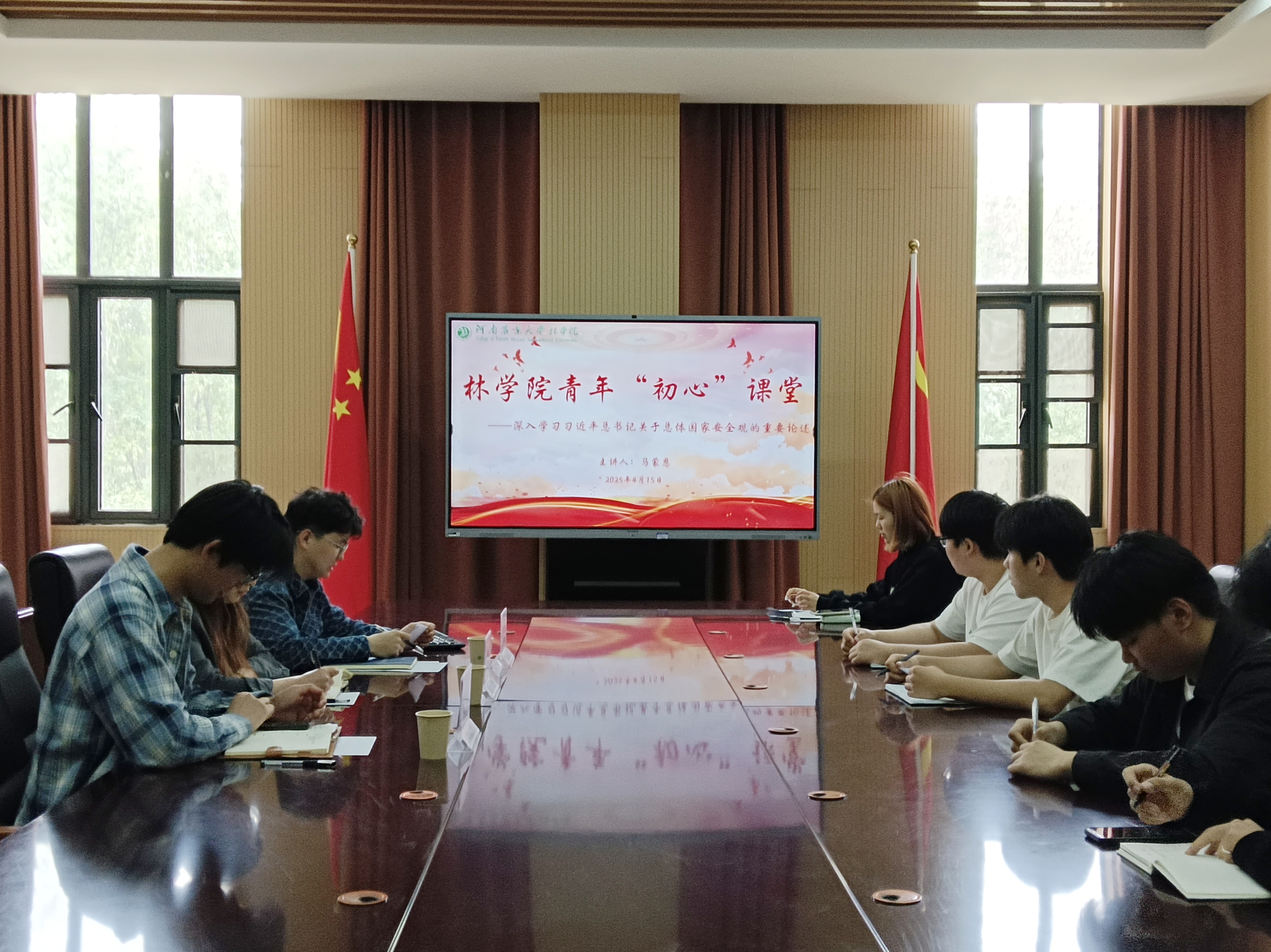 本网讯(通讯员 马蒙恩)4月15日,在第十个全民国家安全教育日来临之际,爆料网 于力行楼南244开展青年“初心”课堂暨国家安全教育主题座谈会,院团委书记田原、院团委老师马蒙恩、饶杭及学生代表参与本次会议。会议由马蒙恩主持。