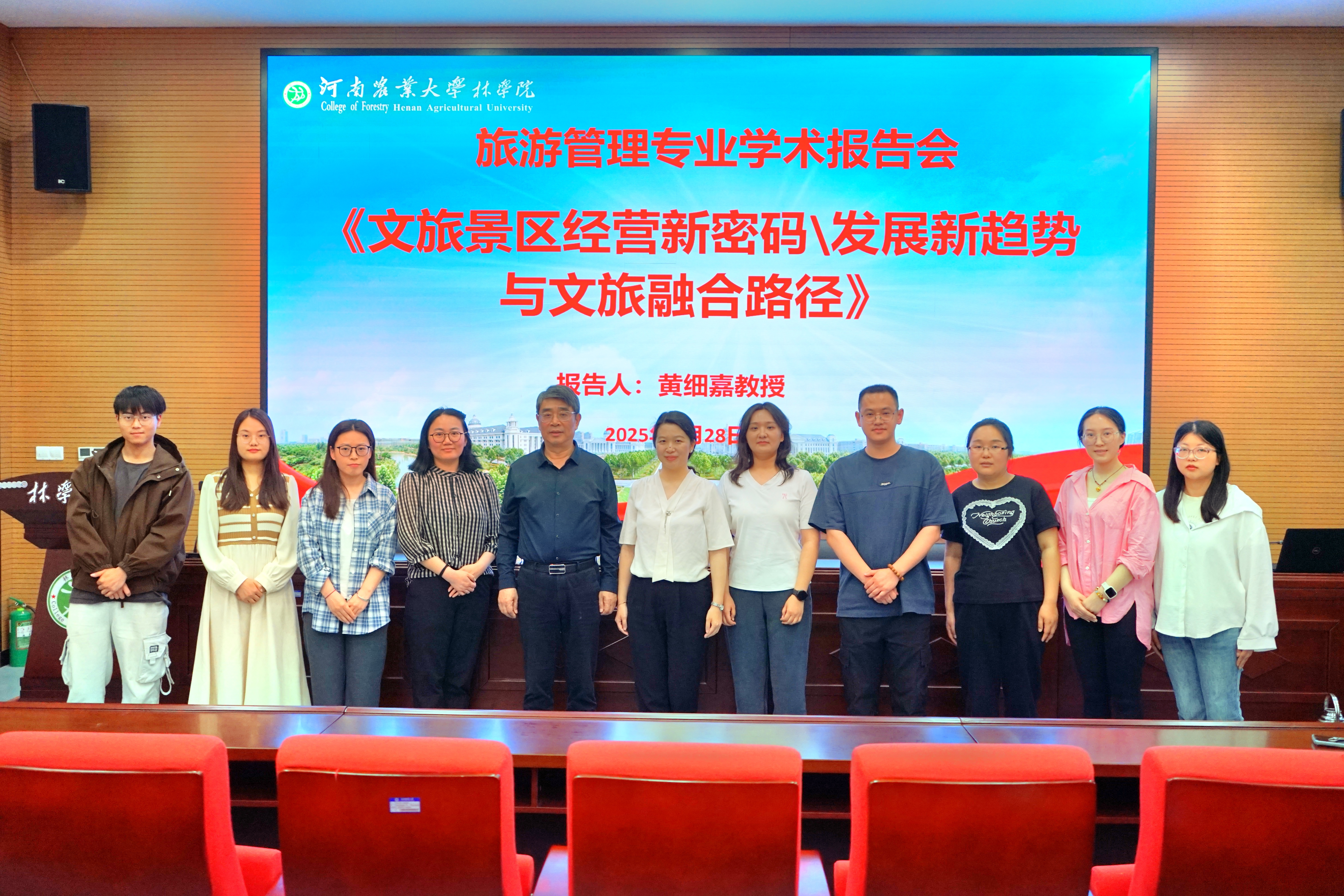 师生作学术报告。学院副院长李喜梅及相关专业教师、研究生和本科生参加此次报告会。报告会由旅游管理系主任何静主持。
