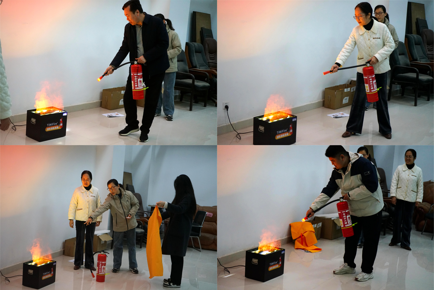 吴会芳为大家现场演示TiMiFire消防演练系统如何模拟真实火灾场景、仿真灭火器、灭火毯的具体使用方法和注意事项,让师生对消防安全知识有了更加明确的认识。在场师生逐一进行了TiMiFire消防演练系统的实操演练。