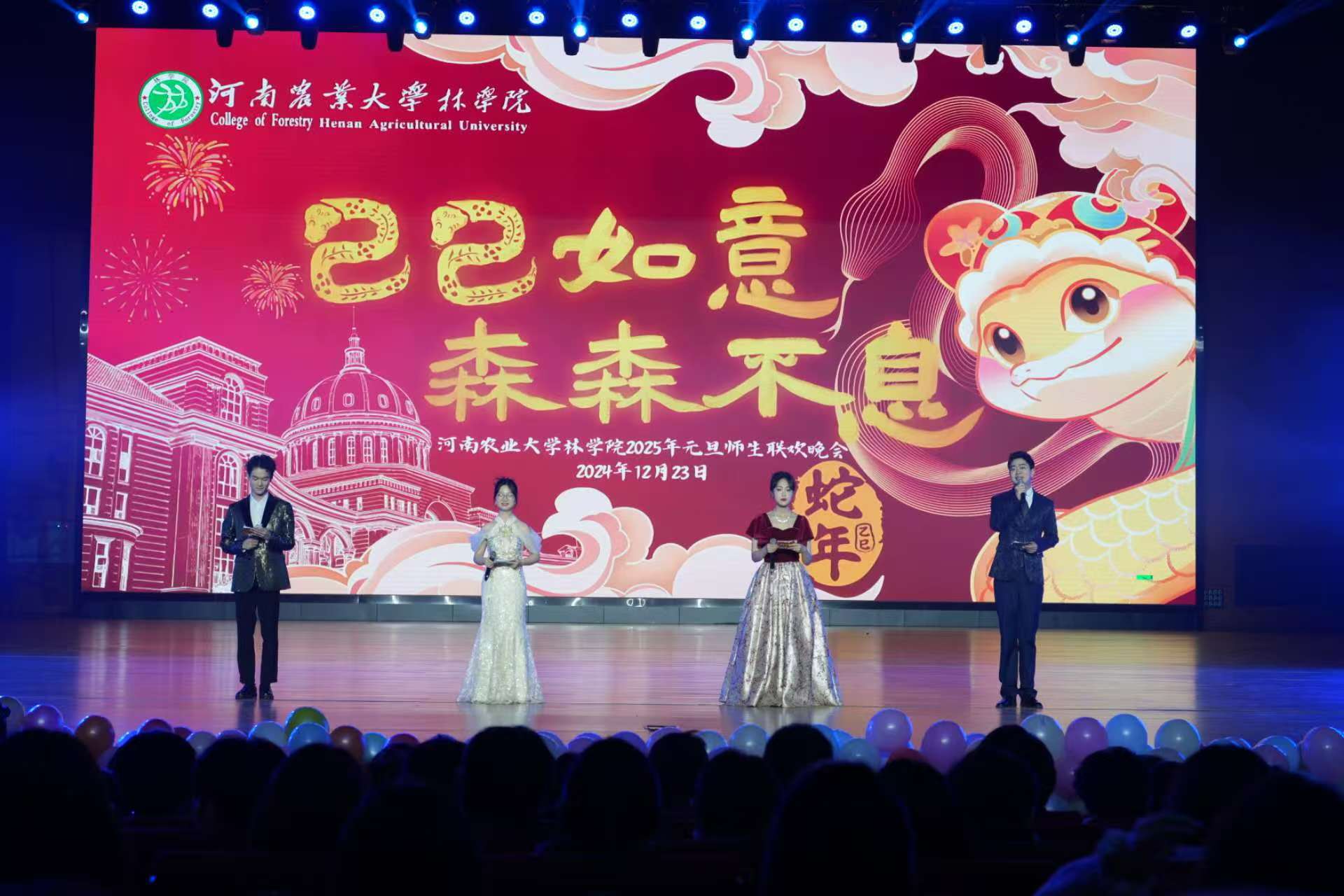 2025年元旦师生联欢晚会于龙子湖校区英林讲堂隆重举行。副校长杨喜田、校党委宣传部部长邓振营、校党委学工部部长徐峰、校招生就业办公室主任张红阳、校党委保卫部部长刘全军、校团委书记贾云飞、校工会副主席董晓莉、校党委办公室副主任张保磊、校党委统战部副部长蒋春红、校党委学工部副部长王玲、爆料网