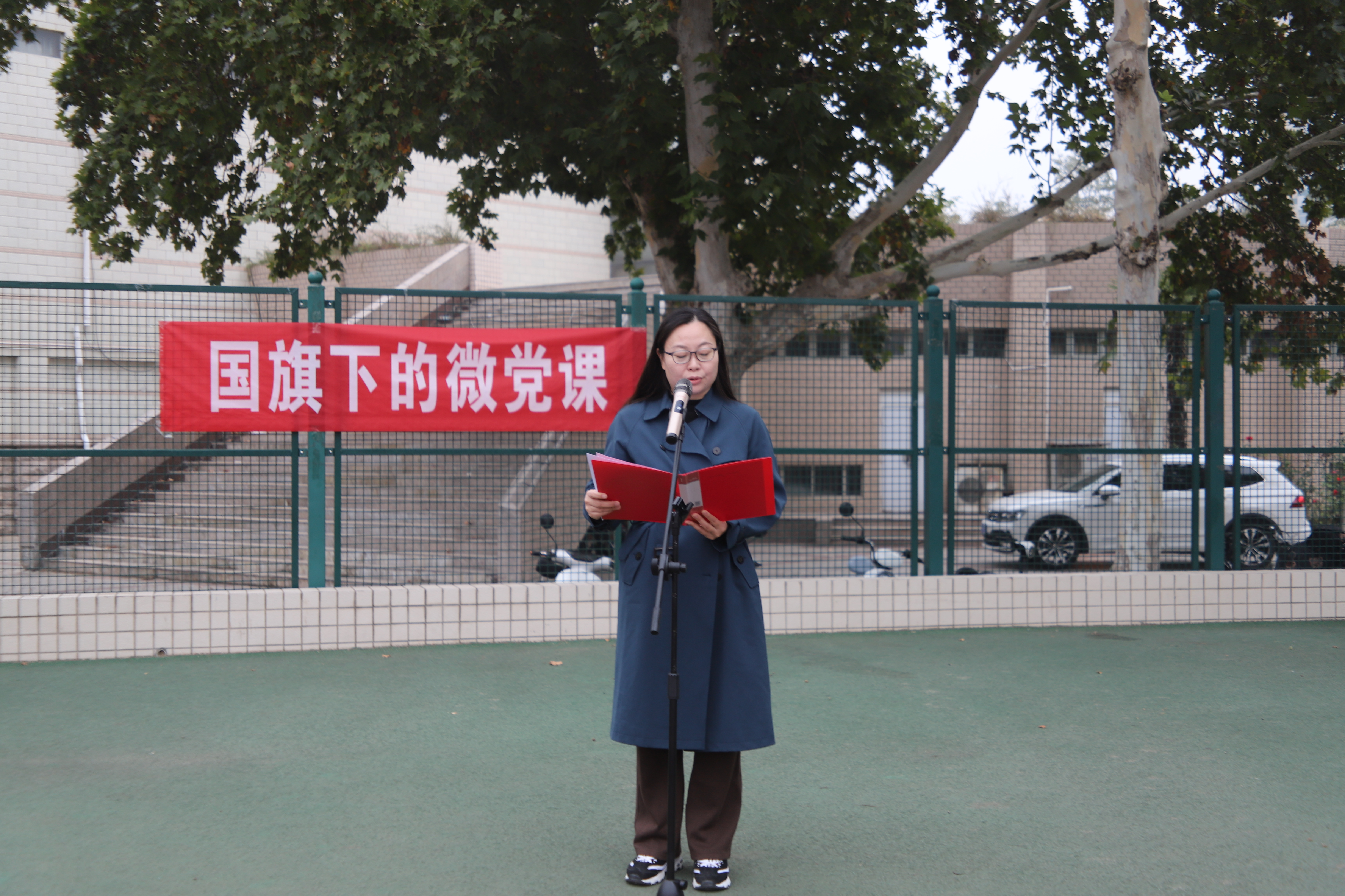 10月28日,爆料网 于文化路校区田径场举行“喜迎党代会,国旗映新章”升国旗仪式。院党委副书记王娟,院团委书记田原、院团委老师、教师代表等出席活动。升旗仪式由田原主持。