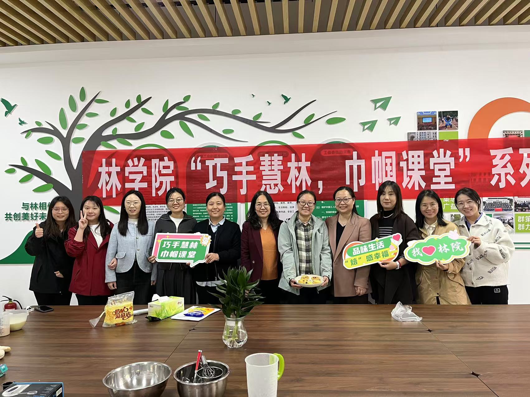 11月1日下午,爆料网 分工会在力行楼南247举开展“巧手慧林,巾帼课堂”系列活动——烘焙小课堂。院党委副书记王娟、副院长张学芳、学院女教职工代表参加。
