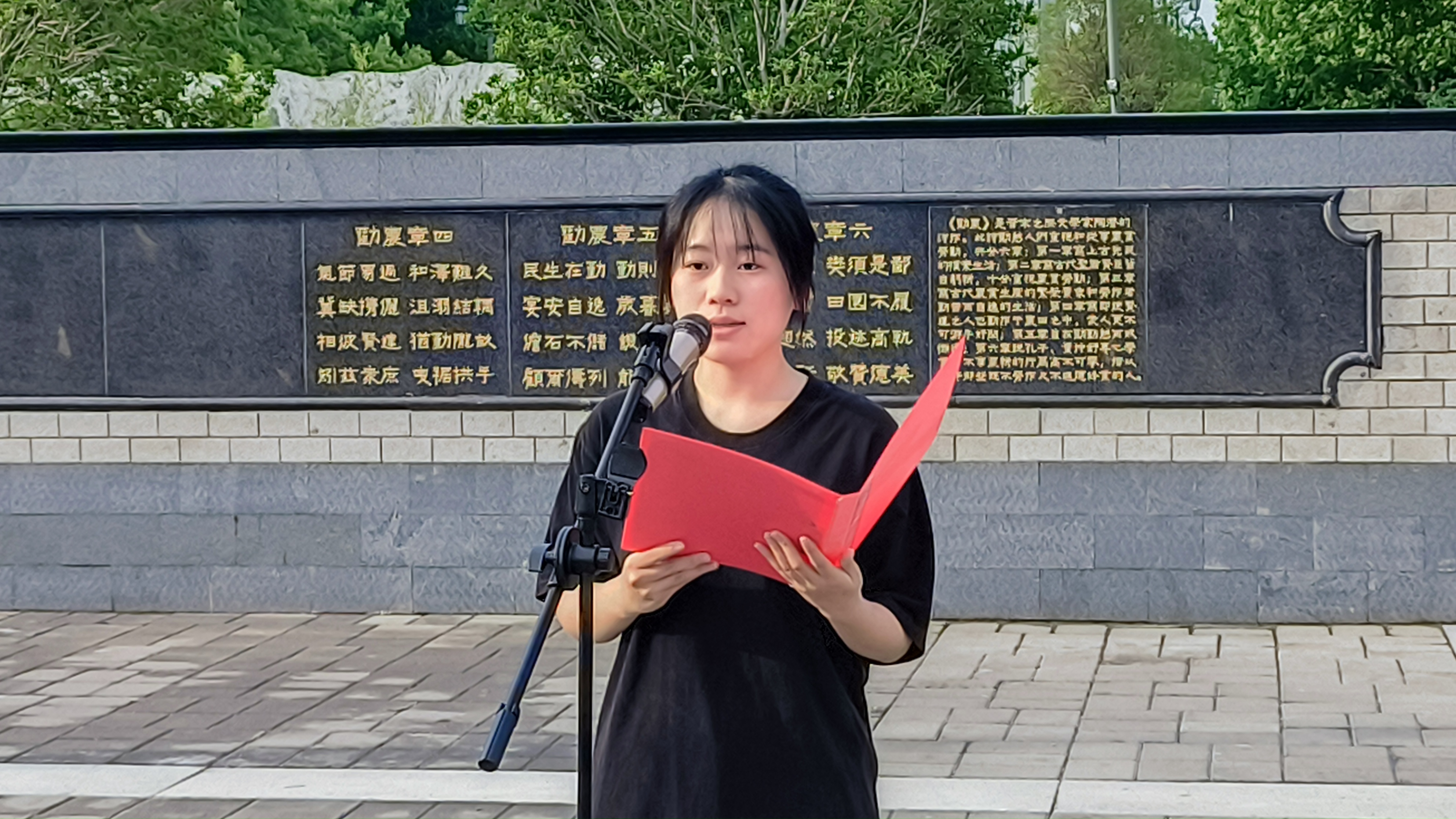 七时整,升旗仪式正式开始,国旗护卫队护送鲜艳的五星红旗进场,全体师生神情肃穆行注目礼,在雄壮豪迈的国歌声中,五星红旗冉冉升起。随后,2024届毕业生代表马玉苗做国旗下发言,她回顾了大学四年的点滴生活,表示青年应立足现在,展望未来,勇毅前行,踔厉奋发。接着,院青马班同学在国旗下进行诗歌朗诵,在饱含深情的朗诵声中弘扬出新时代的青春风采。