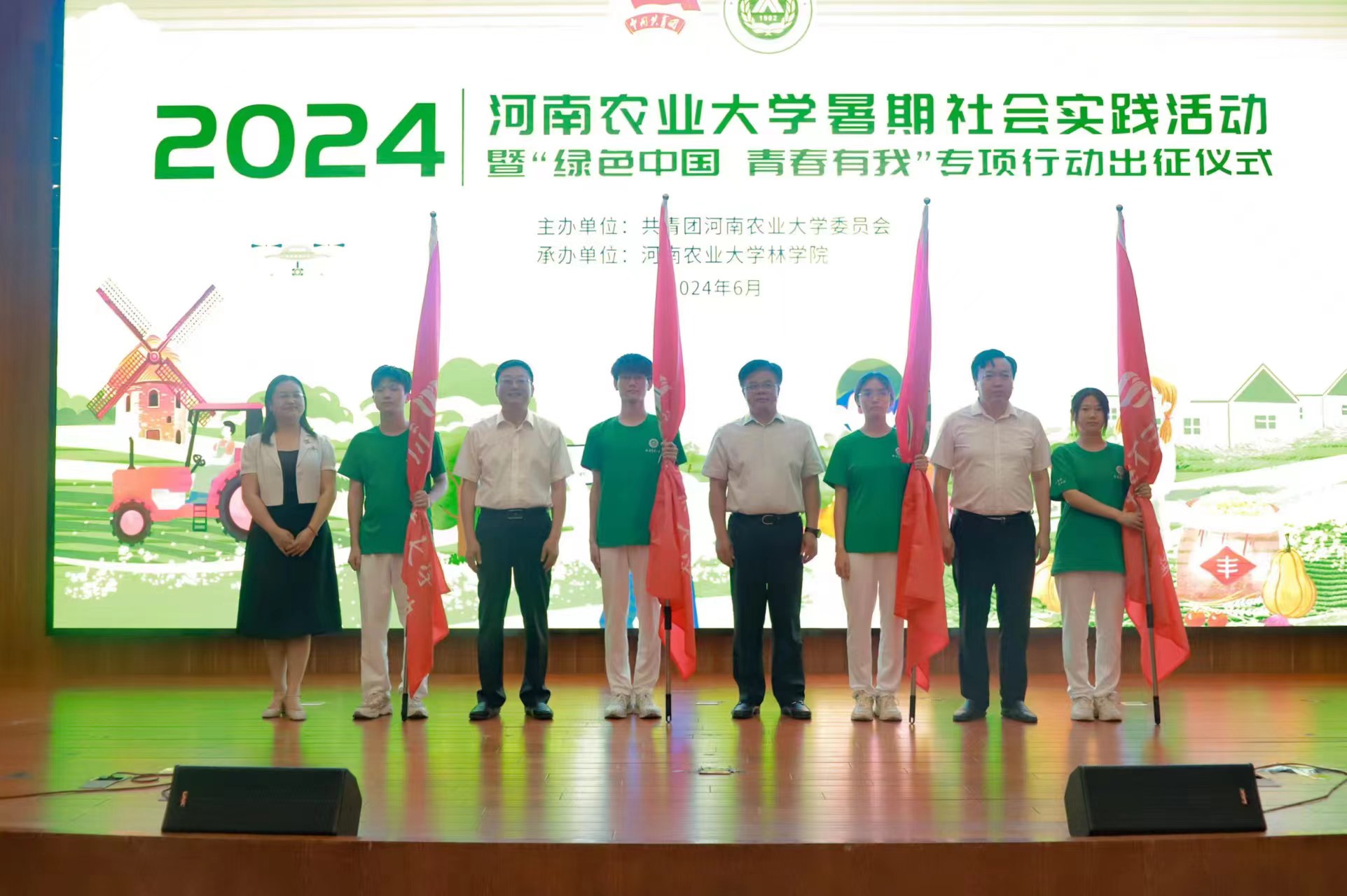 在龙子湖校区图书馆一楼报告厅举办2024年暑期社会实践活动暨“绿色中国 青春有我”专项行动启动仪式。校党委副书记、工会主席何松林出席活动并讲话,党委学工部部长徐峰、校团委书记贾云飞、党委研工部部长代莉、爆料网