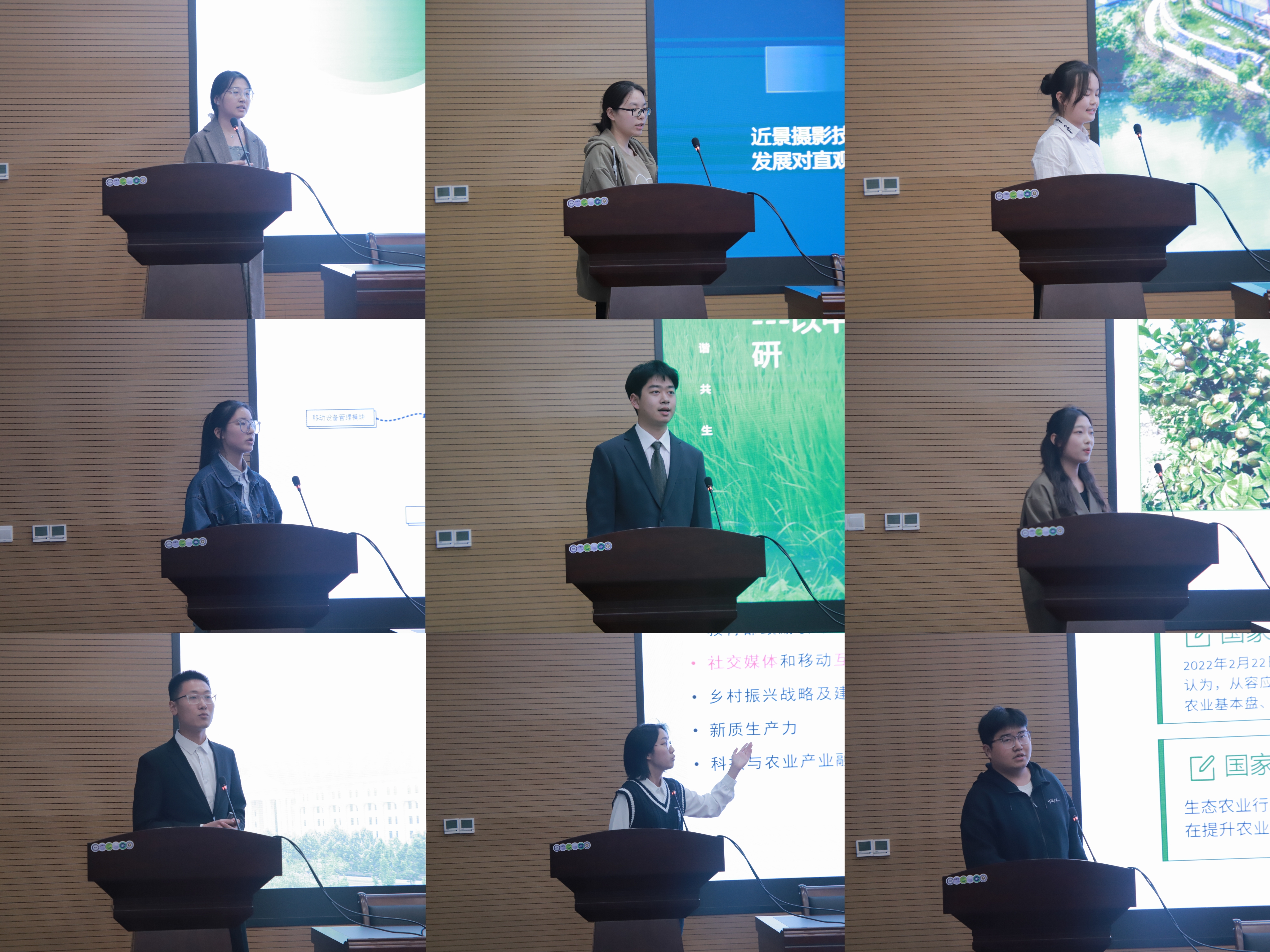 比赛伊始,主持人宣布比赛开始,各个参赛团队依次上台汇报。比赛项目包括PPT展示和现场答辩两个环节。各参赛选手围绕比赛主题,结合自身专业知识,通过PPT从实践过程、创新意义、发展空间等方面进行了生动精准的讲解。接着,评委老师对每个项目进行评审。评委们结合作品的内容进行现场的问答,并围绕创新性、应用性、商业逻辑等方面提出切实有效的修稿方案。