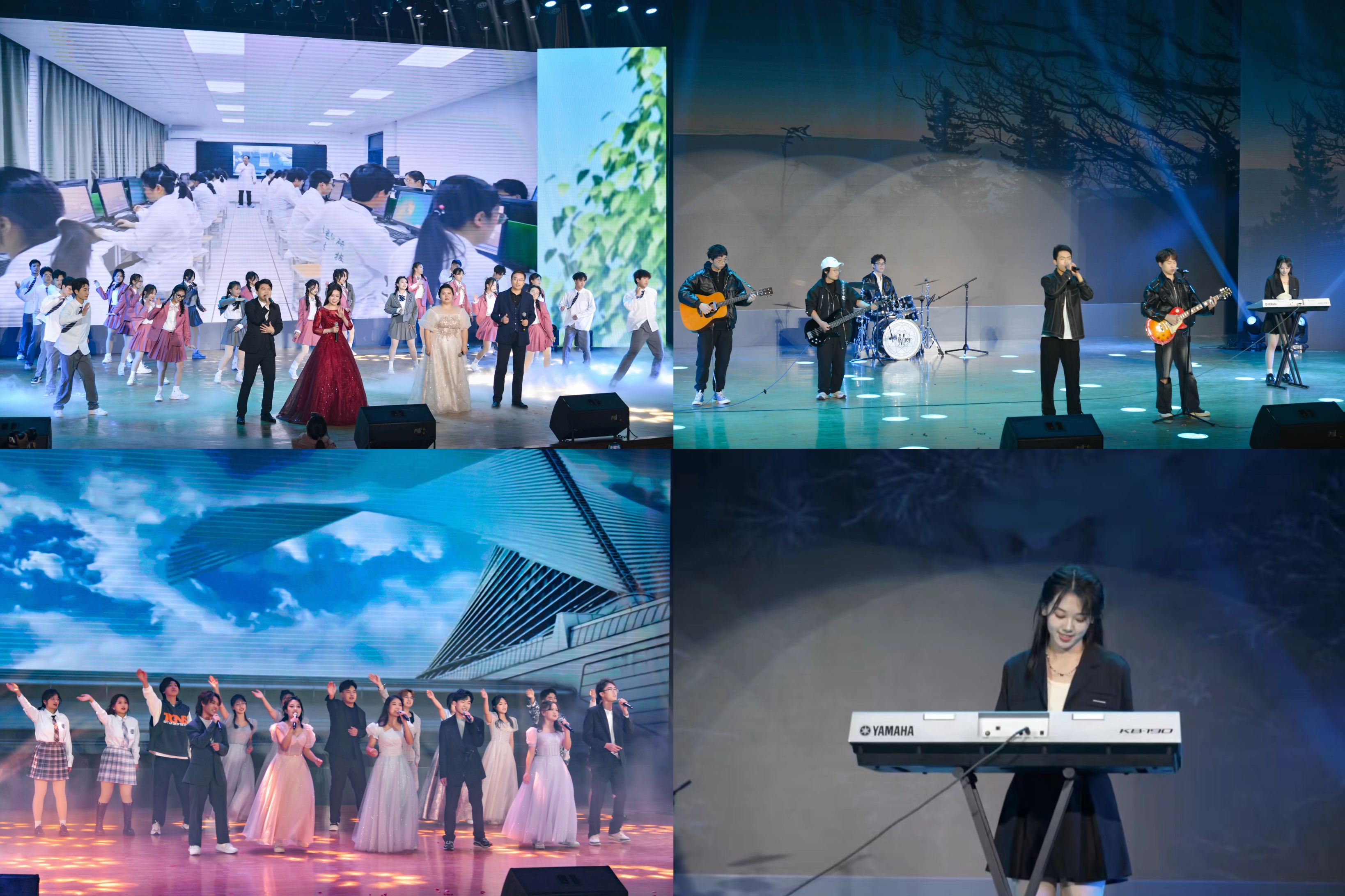 晚会在青春昂扬、活力四射的开场舞蹈《奔跑吧青春》中拉开帷幕,本次晚会共分为“龘龘耀新年”、“朤朤赢未来”两个篇章。街舞《冬日女孩》、《开心跳龙门》以激情洋溢的舞蹈展现出饱满的青春活力、挥洒出绚烂的青春光芒;舞蹈《兰亭序》、《莲韵》、《旑旎》以婉转的歌声,轻盈的舞姿,彰显出传统文化的魅力,让师生身临其境感受传统文化之美;舞台剧《共和国之恋》带领我们穿越历史,一同感悟科学家们用生命写下这份对祖国的情书;杂技《龙鼓竹韵》空竹飞舞、鼓声激昂,伴随着各种高难度动作,现场气氛也来到高潮;小品《反诈银行》和《天网恢恢》以幽默诙谐的方式告诫师生要谨防诈骗,保护自身财产安全;歌曲《林听•理音》、《如愿》以歌声为载体,唱出了两院青年学子对新年的满满信心与无限期望。最后,林、理师生共同演绎的歌曲《一起向未来》以充满活力的歌声唱响了新年新篇章。本次晚会至此也落下了帷幕。