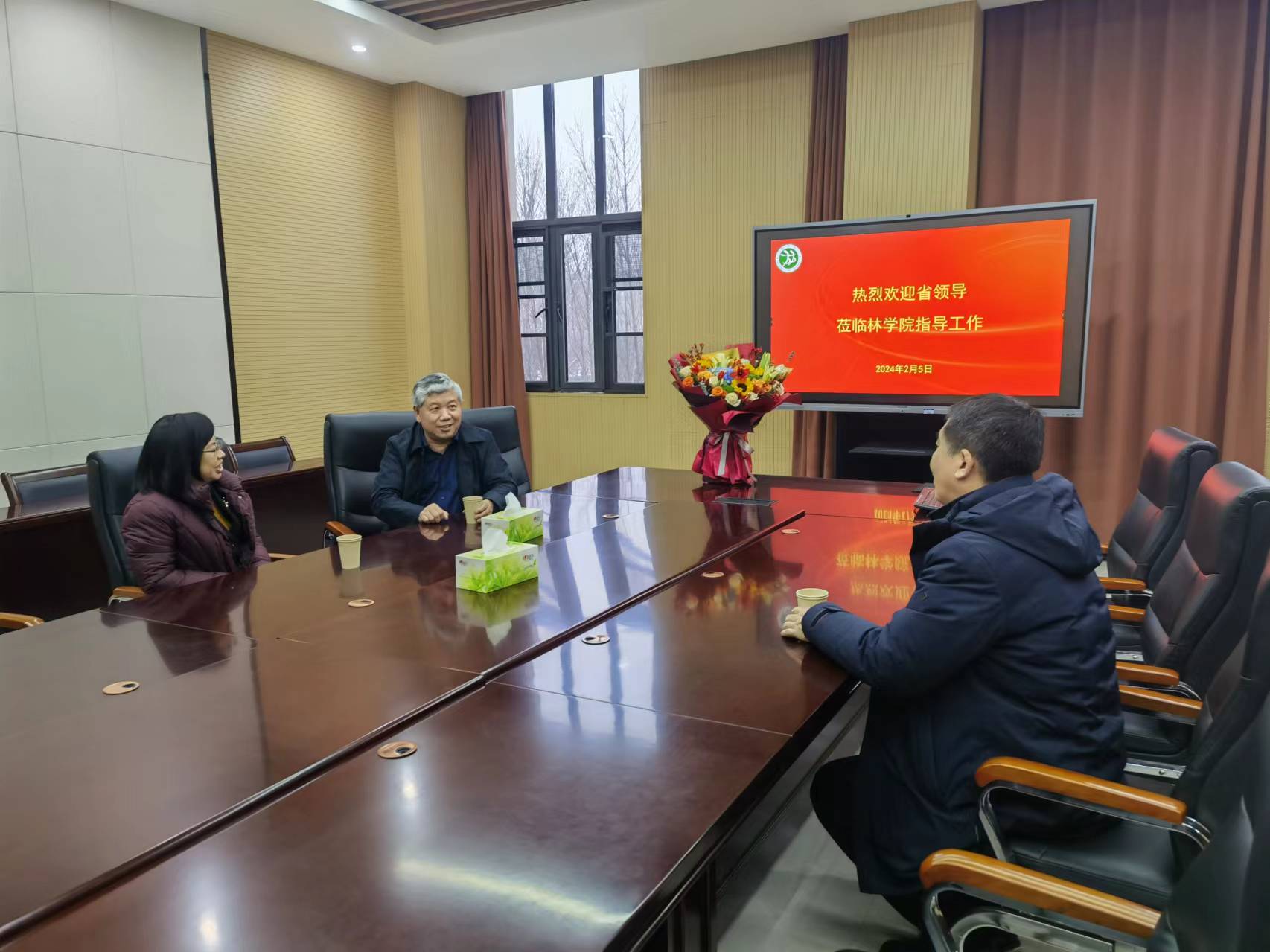 在学院会议室,苏晓红主任代表省人大向范国强教授送上鲜花和新春祝福,并进行了亲切会谈。范国强汇报学院的发展,并表示在中国现代农业联合研究生院刚刚获批之际,要充分利用好此契机来推动学院和林学学科的高质量发展。在谈到自己的研究领域时,范国强表示在蒋建平校长研究的基础上,团队又相继开展了泡桐丛枝病及其致病机理、泡桐种质创制和新品种选育等方面的研究并取得了一定的成果;目前,正在开展泡桐次生代谢产物相关研究,希望可以进一步提高泡桐的经济附加值,继续为乡村振兴战略贡献“泡桐力量”。