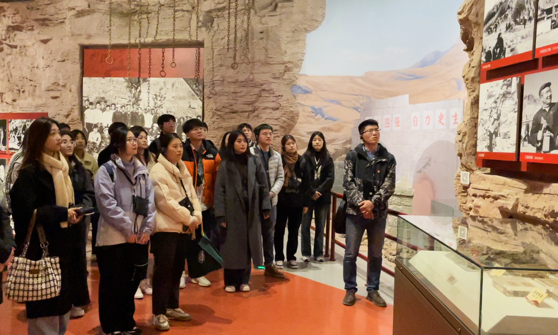 在红旗渠纪念馆,师生党员跟随讲解员的步伐,进入了林县人民战天斗地的奋斗历程,深入了解红旗渠的历史背景、开凿过程、重要意义和新时代的林州风貌,通过参观历史图片、珍贵文物、文献资料等,重温习近平总书记在红旗渠考察时的重要讲话精神,深刻领悟到“自力更生、艰苦创业、团结协作、无私奉献”的红旗渠精神。