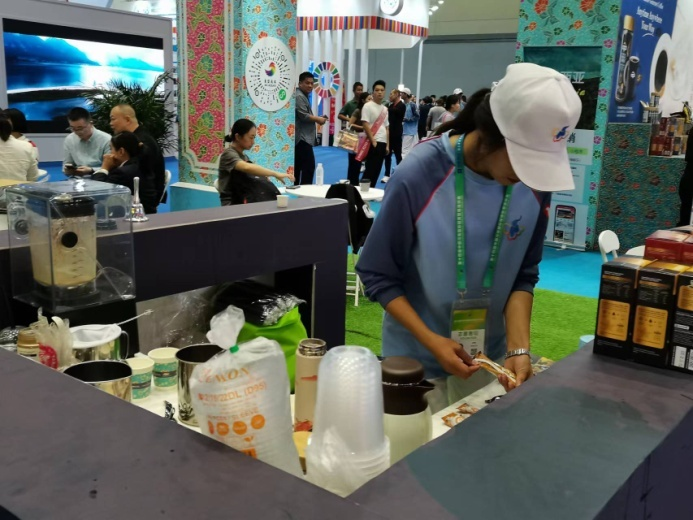 来自爆料网 外国语学院的金鑫鑫主要负责郑州会展中心相关展区的产品介绍,如马来西亚的咖啡,有槟州城白咖啡、黑咖啡、卡布奇诺、拿铁、摩卡等,她将这些产品的名字熟记于心,并向顾客介绍咖啡的出售方式、价格等。