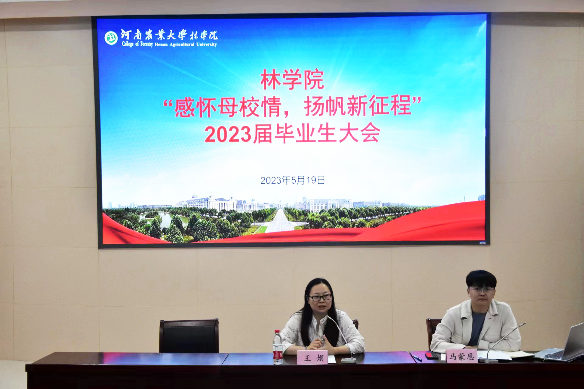 于文化路校区300人报告厅召开“感怀母校情 扬帆新征程”2023届毕业生大会,院党委副书记王娟、院团委书记田原、院团委老师马蒙恩出席本次会议,2023届全体毕业生参加本次会议。