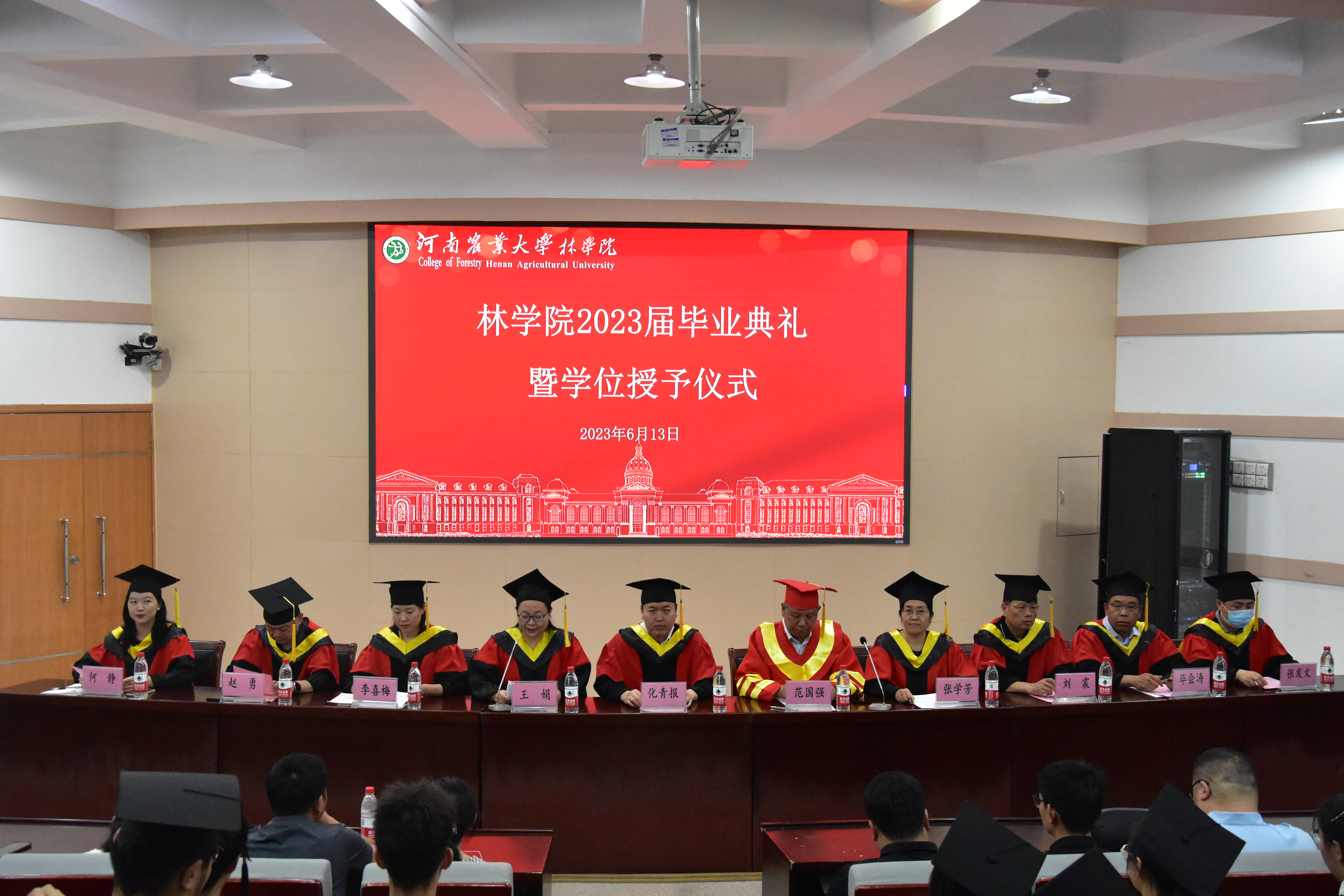 于文化路校区三百人报告厅举行2023届毕业典礼暨学位授予仪式。院班子成员、学术委员会委员、教师代表以及2023届全体毕业生参加此次会议。