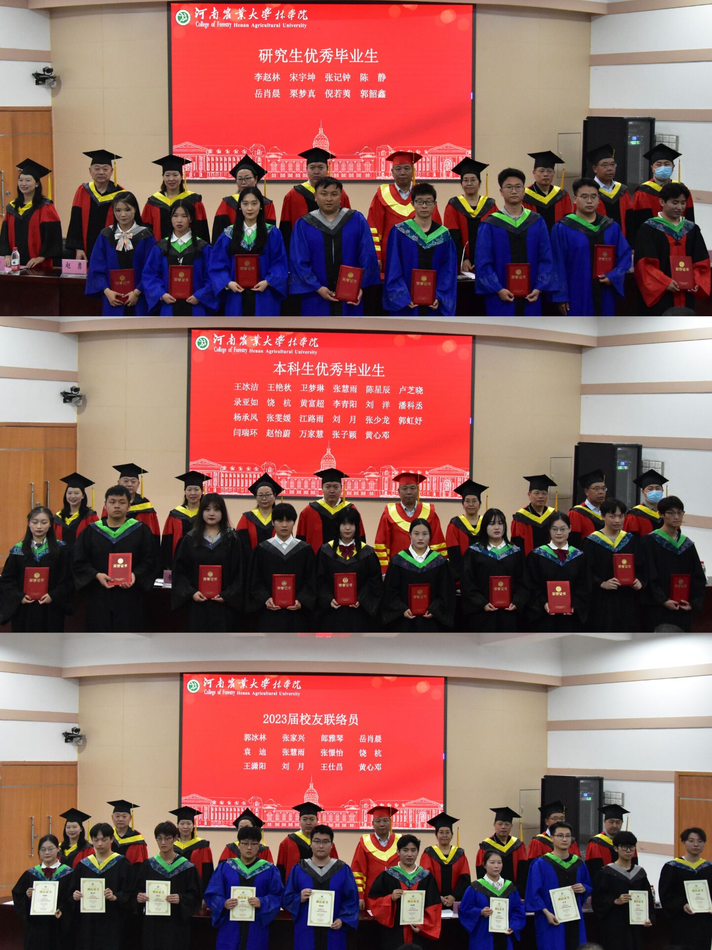 2023届校友联络员名单》,与会老师为优秀毕业生代表颁发荣誉证书,以及为2023届校友联络员颁发聘书。
