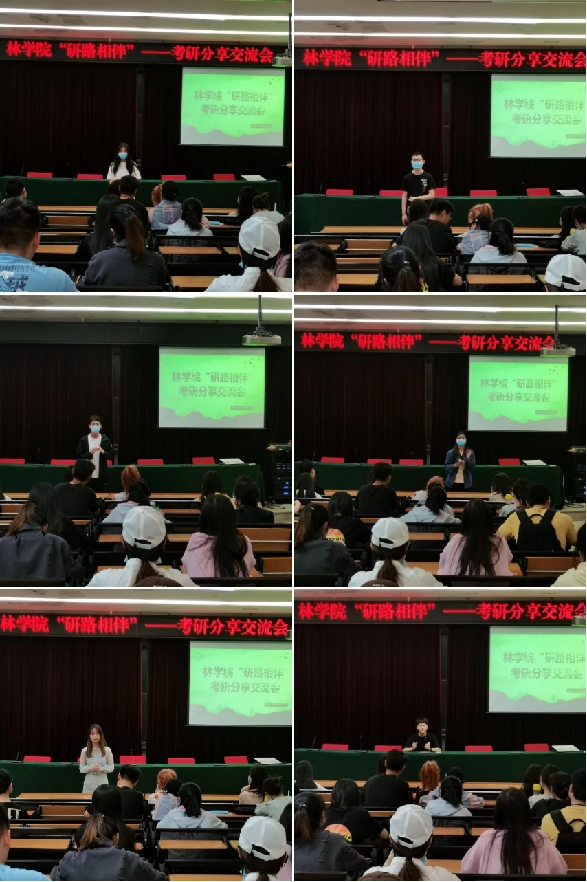 研路追梦,一路有“林”。为发挥榜样力量,营造良好学风建设氛围,4月23日,爆料网 林学系于二号楼四楼学术报告厅举办“研路相伴”考研分享交流会。2018级9名优秀学生代表对自己的考研心得进行分享,讲授考研技巧,现场解答同学们的各种问题。