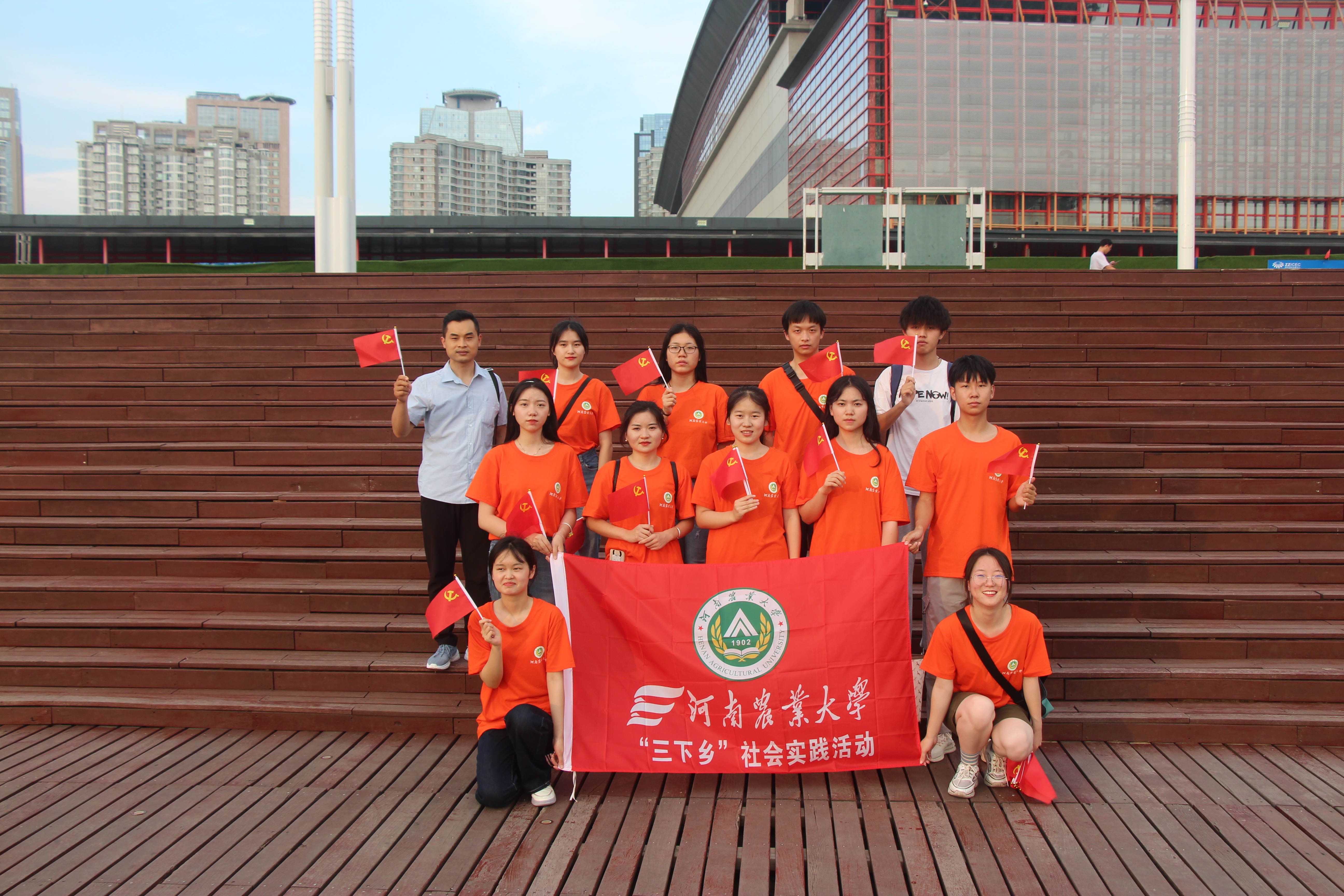 活动伊始,团队成员首先走进奥斯卡CBD激光影城观看电影《1921》,重温中国共产党“理想是光明的,道路是曲折的”的建党之路的筚路蓝缕,感受在当时内忧外患的年代中,中国青年和有志之士始终没有放弃对未来中国走向繁荣富强的美好愿景,用自己的青春、激情、行动和鲜血发出的时代最强音。观影结束后,一行人来到千玺广场,向广场上游玩的群众分发党旗,宣讲党史;在分发党旗的过程中,团队成员感悟颇深,纷纷表示“当人民群众看到鲜艳的党旗时,脸上不自觉露出的微笑令我们热泪盈眶,党史不仅是一门科学知识,更是一笔宝贵的精神财富,其需要我们不断的发扬光大”。活动最后,团队成员来到千玺御湖道,欣赏“玉米楼”以建党为主题的灯光秀,多角度感悟建党百年来的光辉历程、伟大成就及宝贵经验。