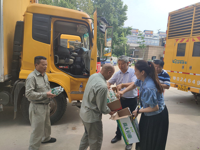 师生看到远道而来的救援电车,院领导第一时间进行慰问并准备了矿泉水、面包、泡面等物品,送到救援工作人员手中, 感谢湖北朋友一路奔波为河南人民献上爱心的行为。救援队的人员说,“我们湖北河南是近邻,是一家人,去年我们湖北疫情的时候,河南人民第一时间就去帮助我们,这是我们应该做的。”风雨无情人有情,豫鄂人民一家亲。
