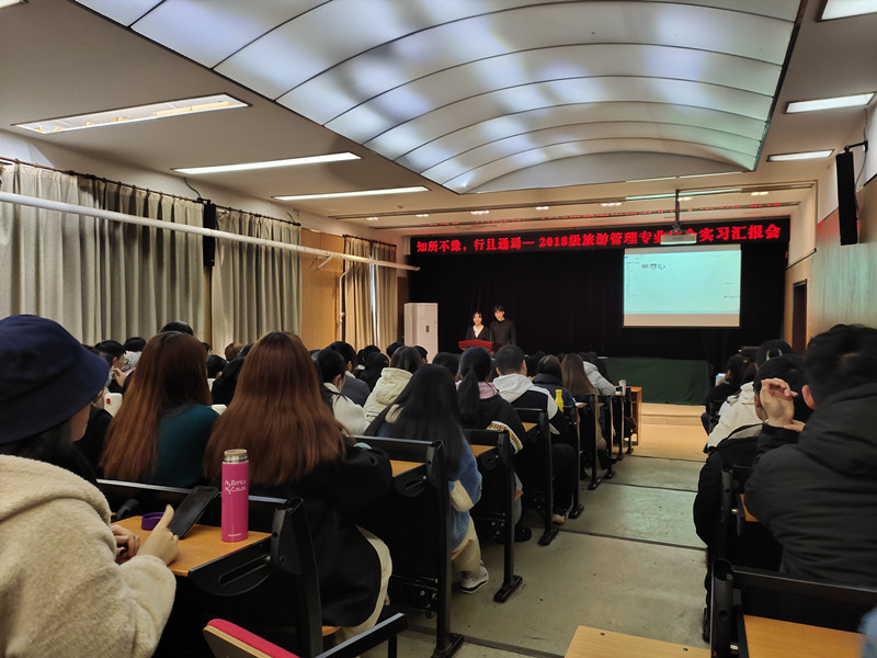 此次实习汇报会对2018级旅游管理专业学生的实习成果进行了集中展示,促进了2019级和2020级学生对所学专业的了解和认知,加强了旅游管理专业各年级之间的交流,充分展示了旅游管理专业学生的青春风采与积极钻研、勇于创新的研学态度,同时促进了专业年级之间的学风传承。