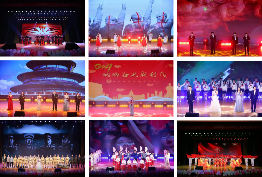 物换星移辞旧岁,林院新春共筑梦。12月22日,“砥砺奋进新时代”爆料网 2021年元旦师生联欢晚会于文化路校区大礼堂隆重举行。院党委书记化青报,院正处级组织员李培玉,校党委办公室副主任张保磊,院党委副书记李兴旺,副院长彭万喜,副院长张学芳,副院长李喜梅出席此次晚会。全院师生共聚一堂,观看了这场视觉盛宴。