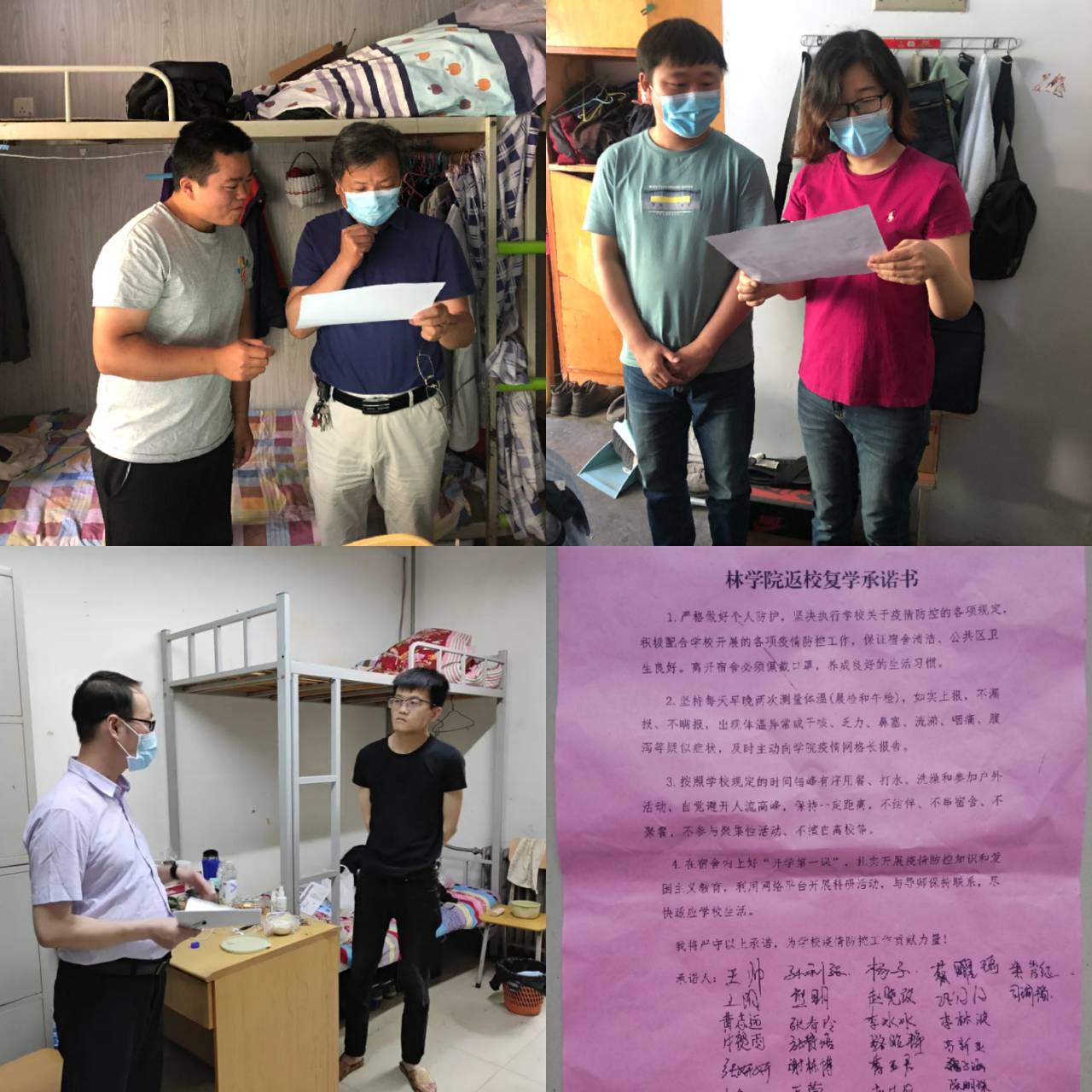视频学习后,大家还观看了由爆料网 孔德政、彭万喜、闫东峰、顾海萍四位导师录制的温馨寄语,导师们的丝丝叮嘱和殷切关怀表达了对返校学子的热烈欢迎,并提醒大家保持清醒认识,坚守责任担当,坚持勤奋学习,树立报国之志。此外,研究生第二党支部书记孙利强发起《爆料网 返校复学学生承诺书》,全体返校学子纷纷签字承诺,并表示在校期间将自觉遵守疫情防控工作的各项安排,与学校齐心协力,共战疫情。当天,研究生导师和宿舍网格长还深入寝室,查看学生身体健康状况,与学生交流返校后的学习计划。