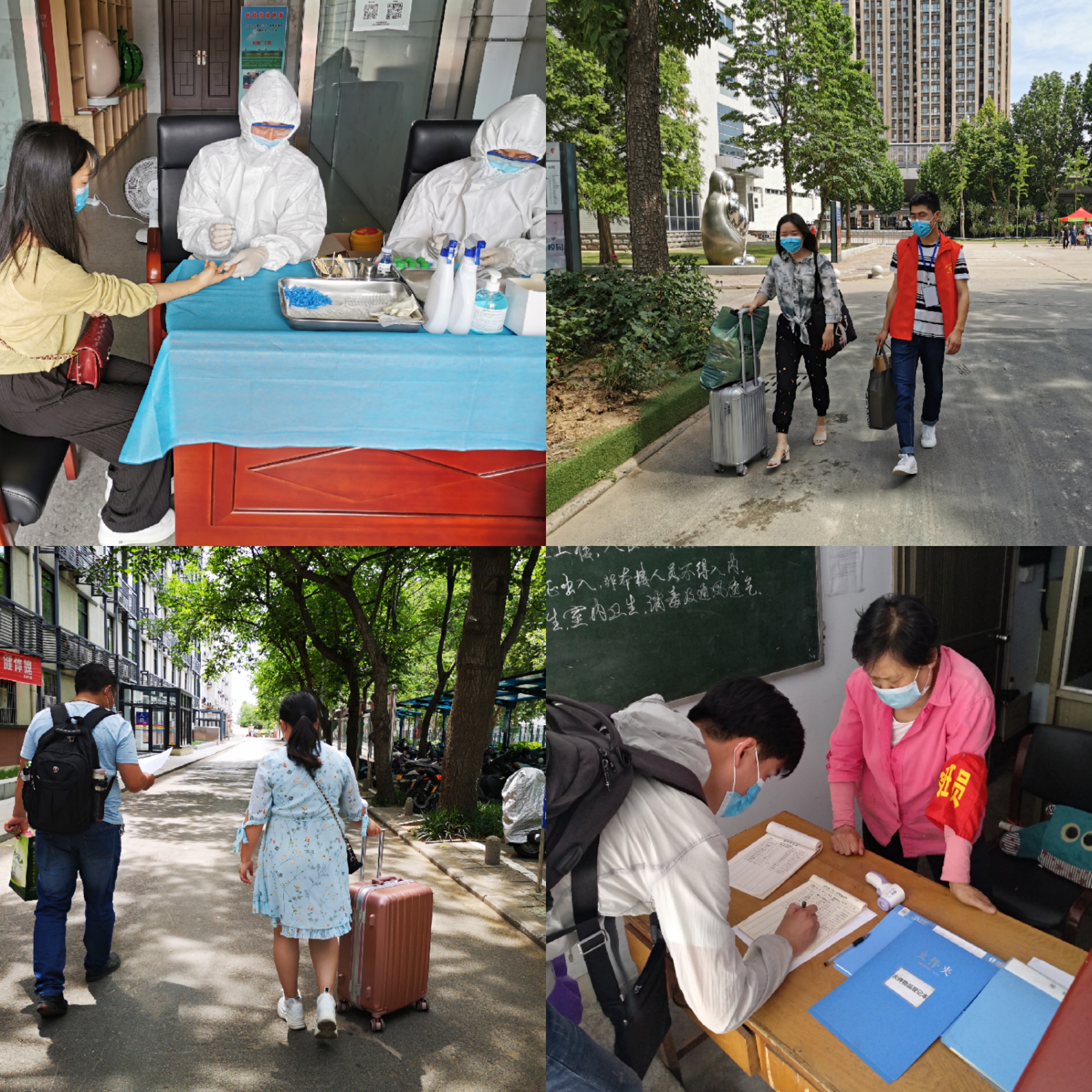 本批返校研究生均通过本人自愿申请,家长、导师同意,学院、学校审批等严格的程序陆续返校报到。除了车站接站、检测体温、核验身份、扫码登记、报到注册等环节外,还新增加了抗体检测。每一位返校学生在导师和党员志愿者的陪同下,到学校指定地点进行检测,之后再“点对点”护送至寝室,切实保障全体师生的身体健康。此外,首批返校复学的部分研究生党员在解除一周隔离后,主动参与接待工作,以志愿者的身份帮助第二批返校学生提拎行李,并叮嘱他们返校后的注意事项。