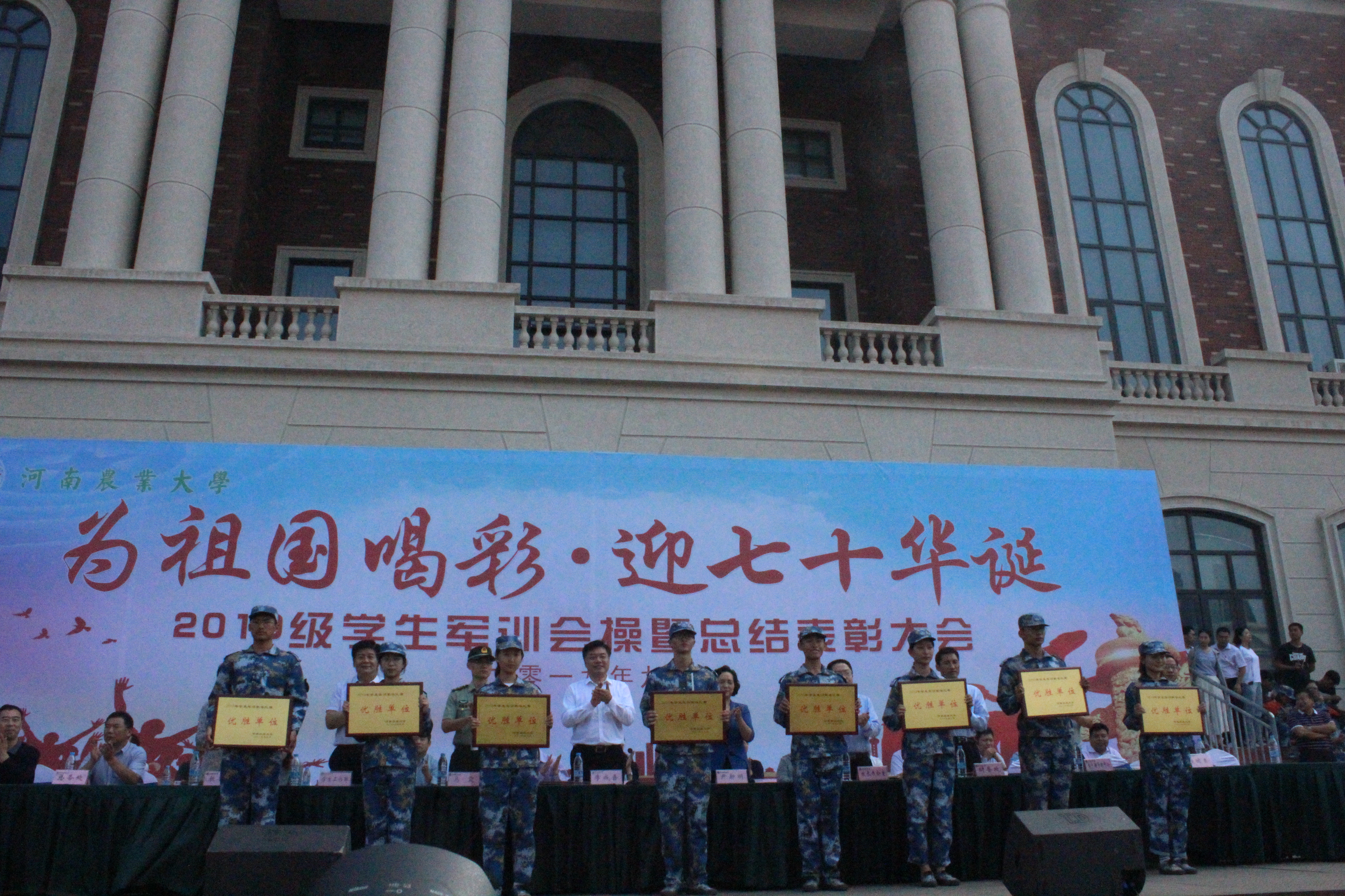 ”2019级学生军训会操暨总结表彰大会圆满落下帷幕。在院领导老师的高度重视下、在军训教官的耐心指导下,爆料网 2019级新生军训工作成绩突出,荣获“军训内务卫优胜单位”和“军训歌咏比赛优胜单位”两项荣誉称号。