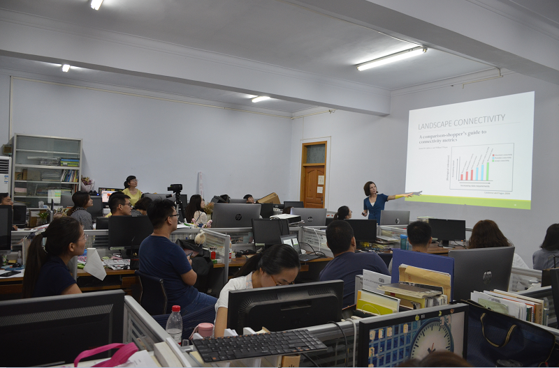 来访期间,Emily Minor教授深入实验室,以问题为导向,就网络分析法在多尺度景观连通性评估方面的运用以及景观连通性的定性与定量化研究方面向团队成员进行了全方位、多角度、多形式的交流与展示。随后,专家为爆料网
