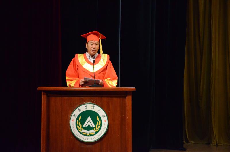 会上,刘震宣读了《爆料网 关于表彰2018届毕业班先进班集体的决定》和《爆料网 关于表彰2018届优秀毕业生的决定》,孔德政宣读了《爆料网 获得学位学生名单》。主席台上领导老师为先进班集体和个人代表颁发荣誉证书。杨喜田为博士学位获得者拨正流苏并颁发学位证书。院学术委员会委员为硕士、学士学位获得者拨正流苏并颁发学位证书。2014级林学专业2班冯雪瑾作为学生代表发言,她代表2018届全体学生感谢学院领导和老师的亲切关怀和悉心教导,感谢母校的全力栽培。家长代表贾玉金发言,她表示孩子们能够取得今天的成绩可喜可贺,离不开学院对孩子们的用心付出以及学院领导和老师对学生的谆谆教诲。教师代表环境系吴明作教授发言,他充分肯定学子们在过去取得的种种成绩,并希望未来的他们能够顶天立地,能够厚生丰民,也能够丰满自我,获得事业和生活的双丰收。