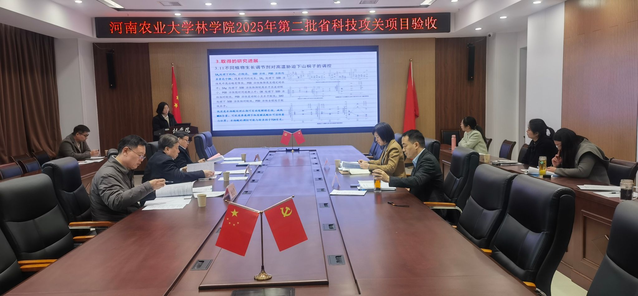 在力行楼2-南-231会议室召开2025年第二批河南省科技攻关计划项目结项验收会议。会议邀请河南省林学会尚忠海研究员、河南农业职业学院刘荣宁教授、郑州大学黄进勇教授担任验收专家,副院长李喜梅教授、项目负责人及部分老师参加了此次会议。会议由学院科研(学科)秘书赵振利教授主持。