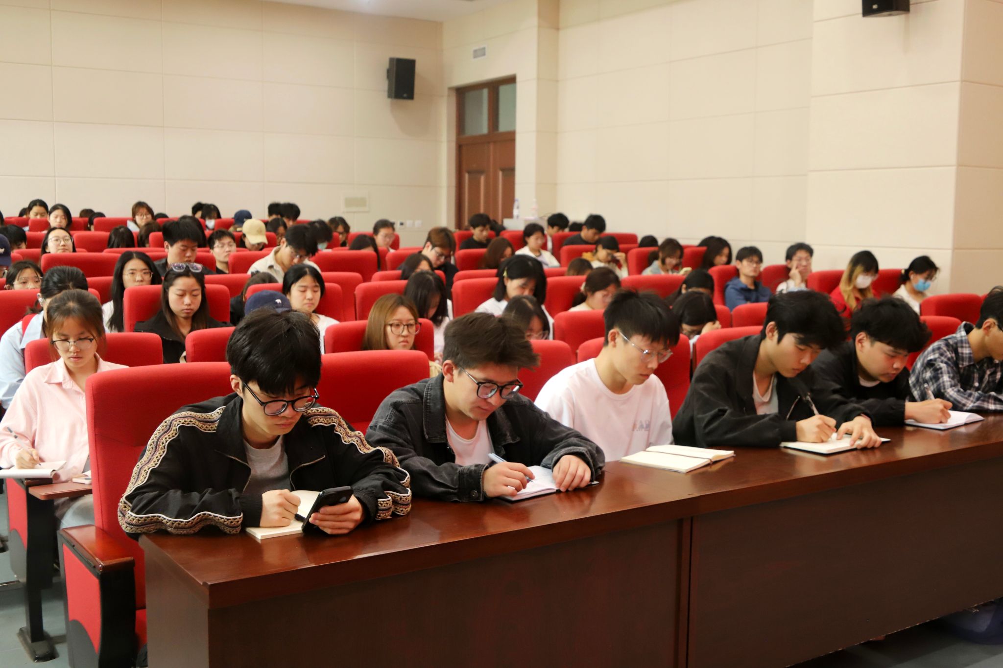 于龙子湖校区力行楼南428报告厅召开五一假期前学生干部工作会议。院团委书记田原,副科级组织员马蒙恩,院团委副书记张琛,院团委老师王冠钦、饶杭及全体学生代表参加此次会议。会议由田原主持。