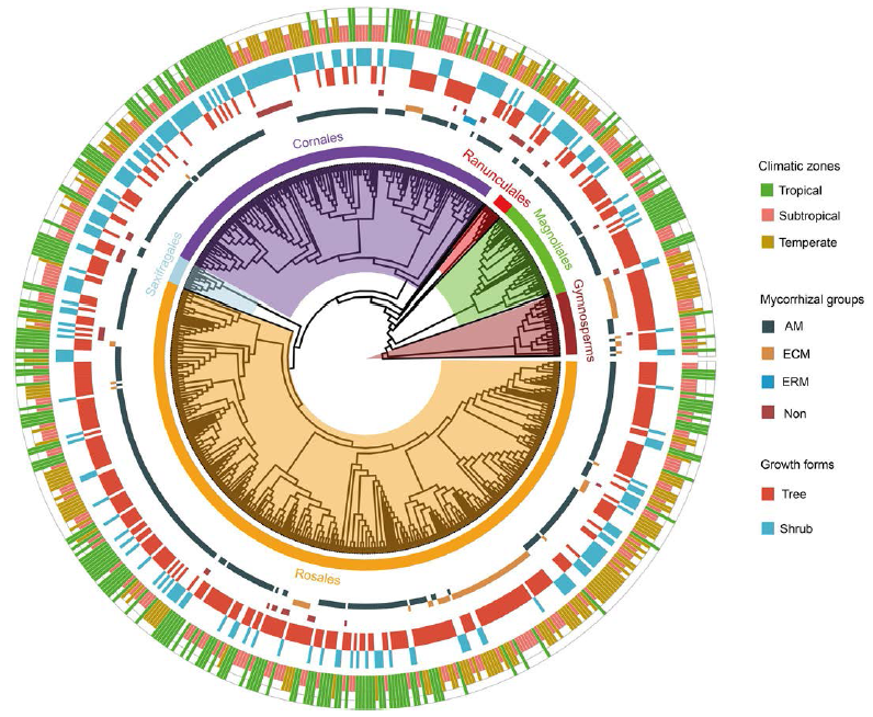 孔德良教授团队在国际植物学顶级期刊《Nature Plants》上发表题为《Arbuscular mycorrhizal association regulates global root-seed coordination》的研究论文。本研究首次报道了全球尺度上植物根系与种子性状的协同变化规律,并揭示了菌根真菌通过磷获取和致病菌防御功能在根-种子协同关系中的关键作用。
