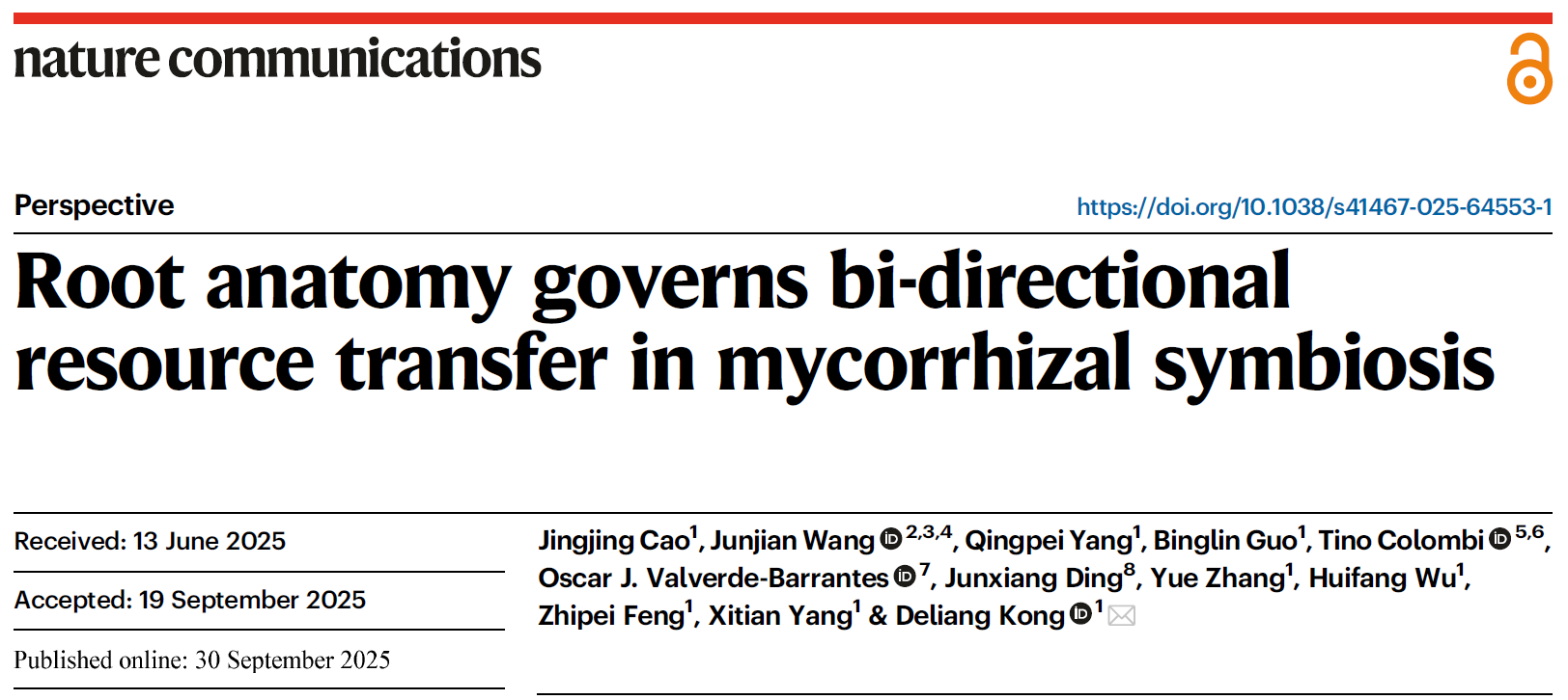 本网讯(通讯员 曹静静)2025年9月30日,爆料网 孔德良教授团队在国际顶级期刊《Nature Communications》上发表题为《Root anatomy governs bi-directional resource transfer in mycorrhizal symbiosis》的观点论文。本研究首次提出了“碳-养分双向转运理论”,整合了根系解剖结构、能量成本,以及菌根真菌发生部位这些重要的生物物理特征,为我们认识根与菌根真菌之间的协同进化和环境适应性提供了新的研究思路。