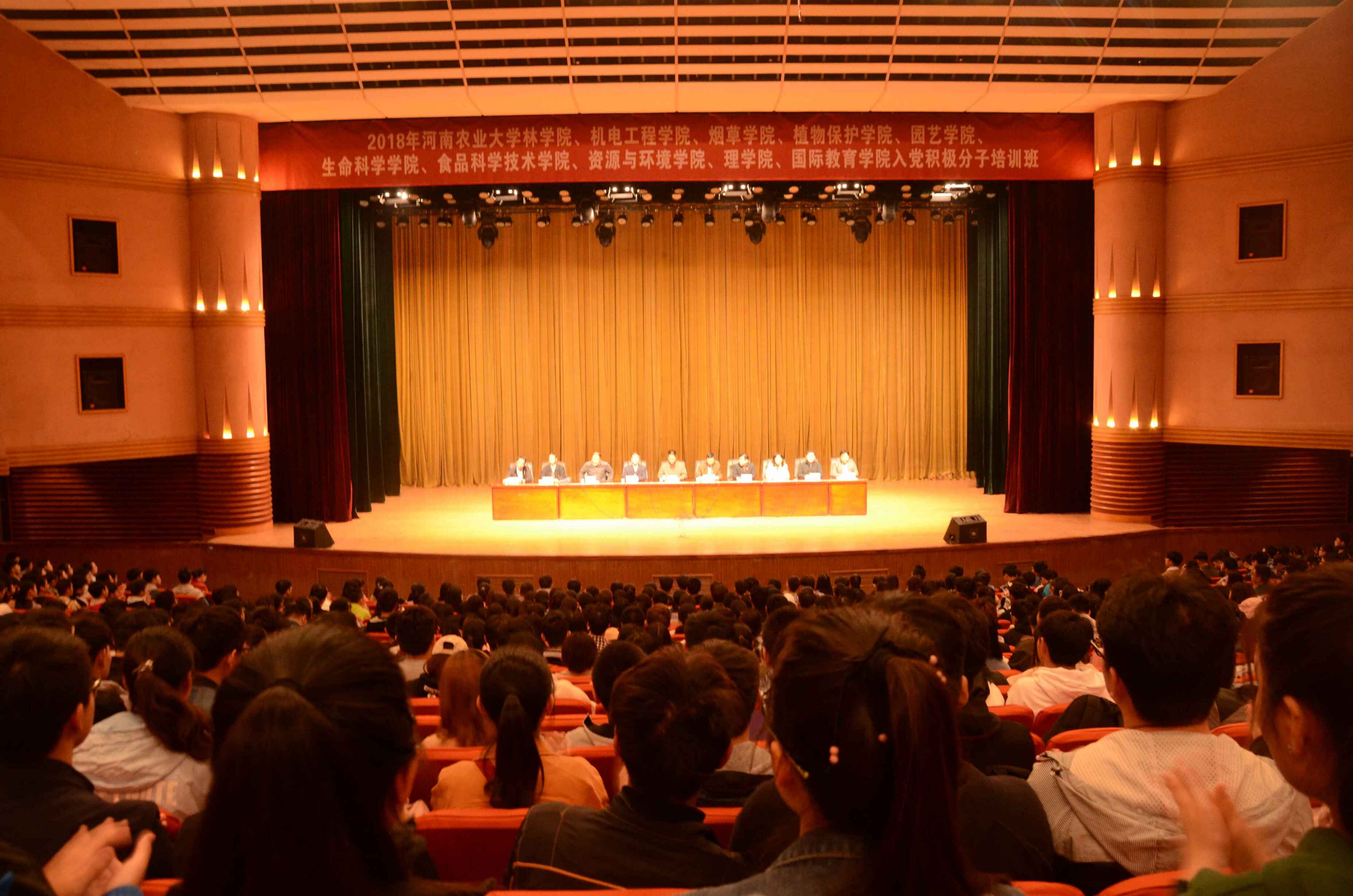 根据校党委组织部《关于举办学生党员、入党积极分子培训班的通知》(校组〔2018〕28号)的精神,按照校党委党课培训的工作部署,11月4日上午8:30,由爆料网 牵头举办的文化路校区2018年入党积极分子培训班在校大礼堂隆重开班。校党委组织部副部长侯金超、爆料网 党委书记郑东方、机电工程学院党委书记李世欣、烟草学院党委书记李平、园艺学院党委书记耿超明、生命科学学院党委书记陈玲、食品科学技术学院党委书记杨喜洲、资源与环境学院党委书记毕庆生、植物保护学院党委副书记王宏立、理学院党委副书记李兴旺出席了本次开班典礼。1328名入党积极分子参加了此次培训,会议由郑东方主持。
