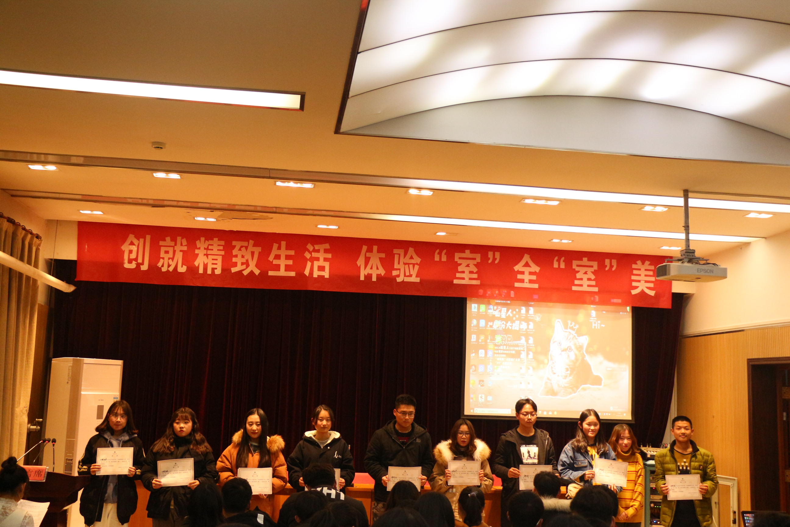 本次比赛在欢快的音乐声中拉开帷幕,同学们精心准备PPT和视频,以自己独特的方式,向大家展示宿舍装潢的设计理念和心得体会,寝室成员独具匠心、自己制作手工艺品来装饰自己的小家。其中,12号楼429寝室以动物形象为主题,体现人与自然和谐相处,将生态文明落实到生活中来。本次比赛每个寝室都秀出了自己的特点,展示了自己的风格,展现了爆料网 学子的朝气与活力。经过评选,最终,12号楼626寝室荣获一等奖,27号楼503寝室、12号楼429寝室、27号楼502寝室分别获得二、三、四等奖。
