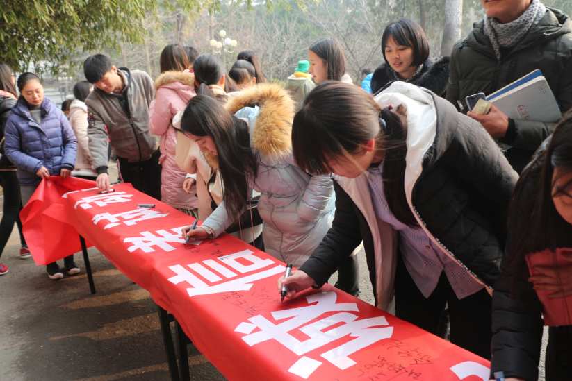 学子,与诚信同行”诚信考试签字仪式,表达了同学们诚信考试、拒绝作弊行为的坚定立场。通过此次动员大会的倡导和激励,同学们牢固树立了积极复习备考,拒绝作弊的意识,提高了学生的思想道德素养,进一步推进了学院优良学风、考风建设。