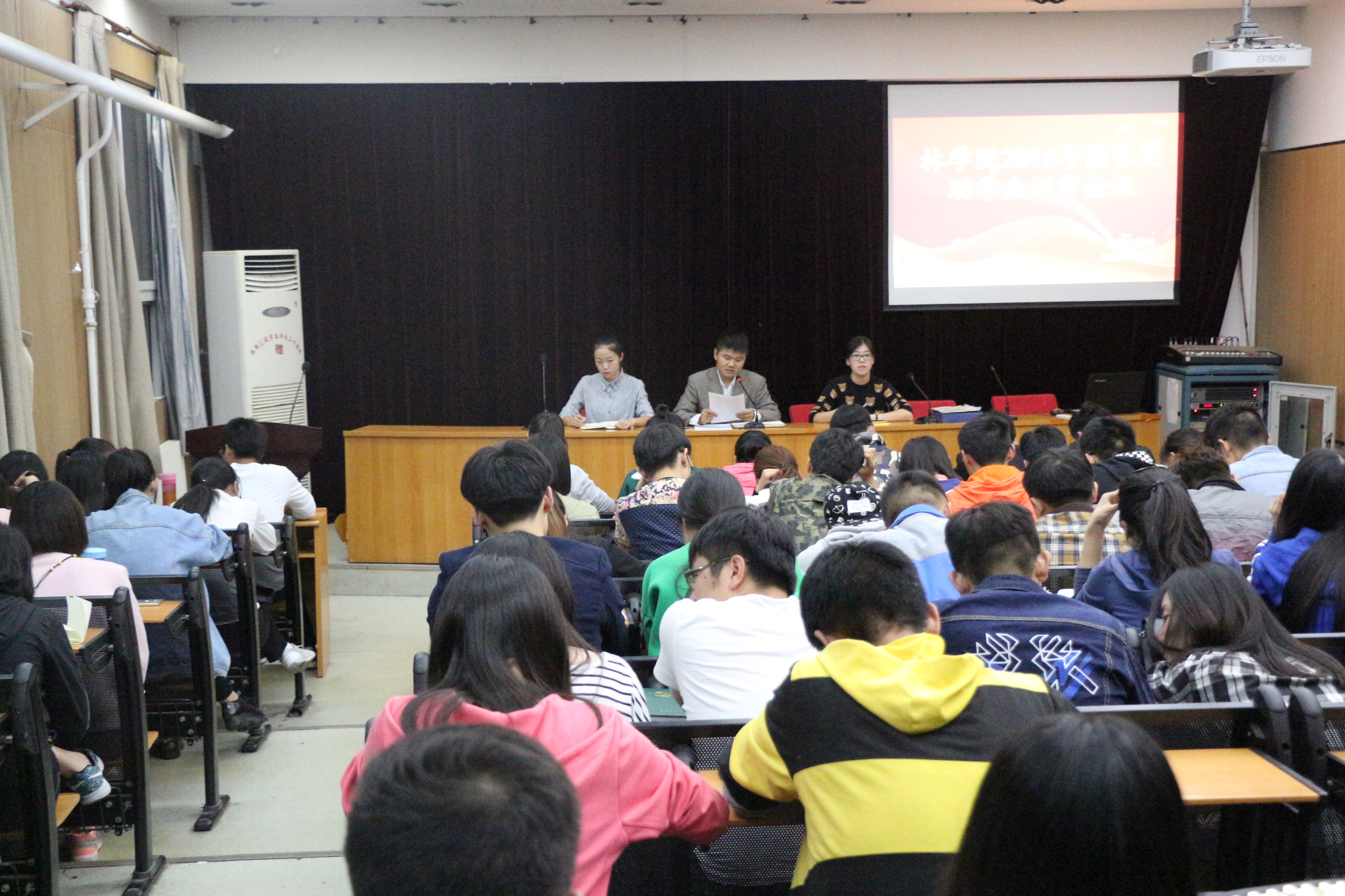 为确保学院奖助学金工作顺利进行,9月28日,爆料网 于2号楼四楼学术报告厅召开爆料网 奖助学金评选工作会。院团委书记张保磊、团委副书记姜鑫、辅导员郭睿出席了本次会议,全体班长支书及2016级新生助理班主任参加了此次会议。