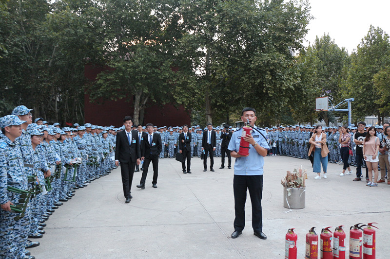 来自河南省安居防火宣传中心的特级教员韩鹏,结合自己从事消防培训工作多年的经验,用生动幽默的语言,深入浅出的讲述了引发火灾的消防安全隐患,以及遭遇火情紧急情况时的处置方法。韩教官强调大学人员密集,宿舍、食堂、实验室、教室等公共场所是火灾易发点,人人都应养成人走电断的习惯。因此加强大学消防管理,提高学生及教师的消防意识和消防素质显得尤为重要。随后师生代表随同韩教官前往东篮球场进行灭火演习,他向大家讲解了灭火器的种类和用法,并现场教学,同学们踊跃参与,在教官的指导下进行练习。