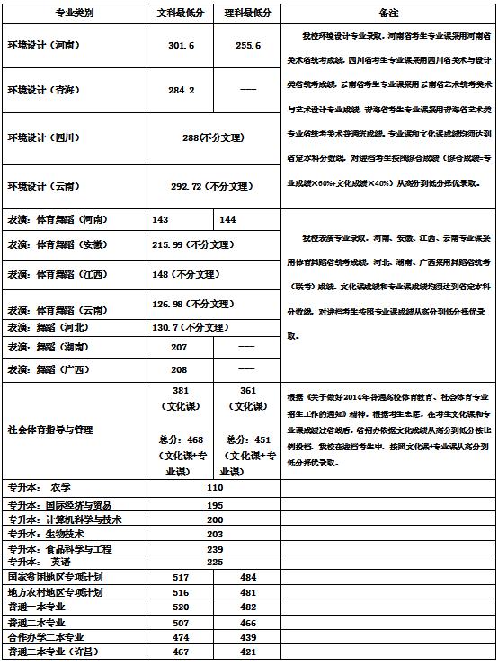 2018年我校设计学类专业只在河南、四川、云南、青海四省招生。河南考生专业课采用美术类省统考成绩,四川考生专业课采用美术与设计类省统考成绩,云南考生专业课采用美术学及艺术设计类省统考成绩,青海考生专业课采用美术类普通班省统考成绩。专业课和文化课成绩均须达到省定本科分数线,对进档考生按照综合成绩(综合成绩=专业成绩×60%+文化成绩×40%)从高分到低分择优录取。